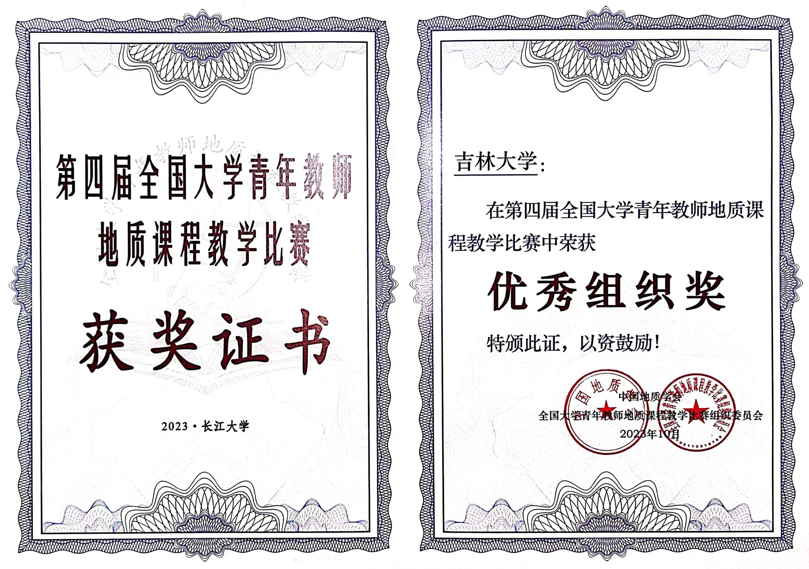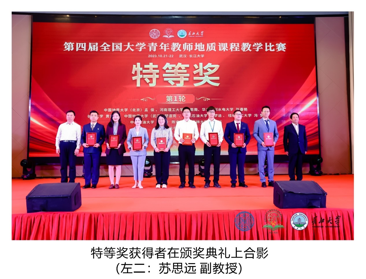 2023年10月21日至22日,由中国地质学会主办,中国地质学会地质教育研究分会、长江大学承办的第四届全国大学青年教师地质课程教学比赛在长江大学举行。我校yl8cc永利官网参赛教师苏思远副教授和张彦龙副教授表现优异,分别荣获“特等奖”和“一等奖”,yl8cc永利官网荣获“优秀组织奖”。