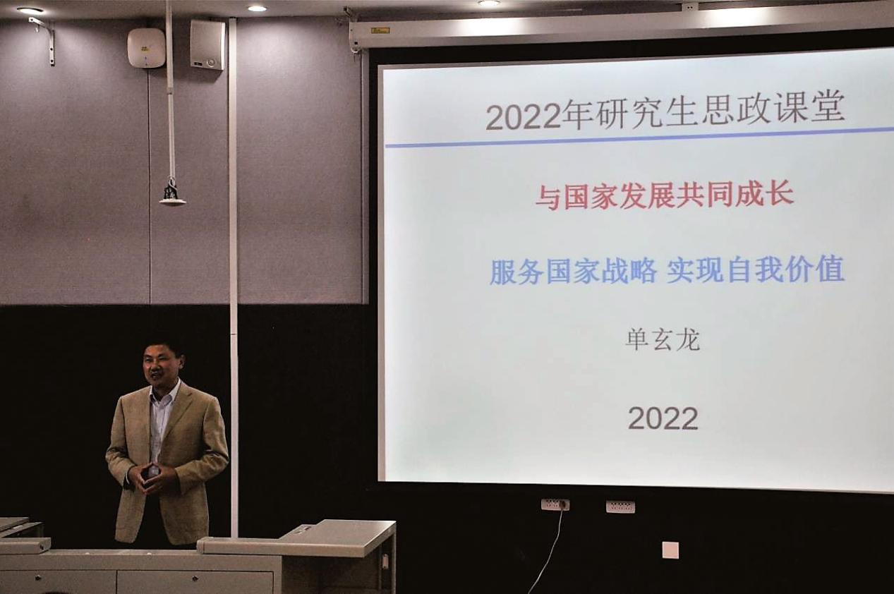 为落实立德树人根本任务,帮助学生扣好研究生学业阶段的第一粒扣子,9月21日上午,yl8cc永利官网院长单玄龙教授在鸽子楼125阶梯教室为学院2022级研究生讲授了以“与国家发展共同成长——服务国家战略,实现自我价值”为主题的研究生“开学第一课”,活动由学院党委副书记马旭主持。